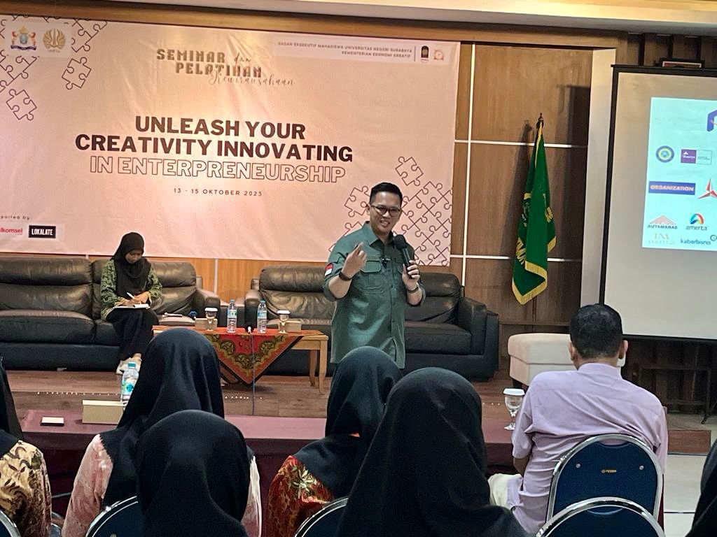 “Kita bentuk kebiasaan kita dan nantinya kebiasaan itu akan membentuk kita,” tandas Mas Andi saat menjadi narasumber di acara Seminar Enterpreneur dengan tema “Unleash Your Creativity Innovating in Entrepreneurship” yang digelar di Grha Kadin Jatim, Surabaya, Jumat (13/10/2023).