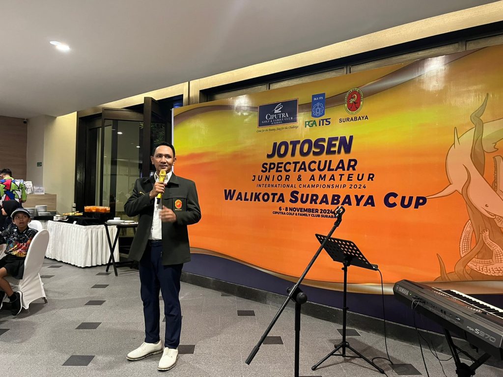 Surabaya – Persatuan Golf Indonesia (PGI) Surabaya menggandeng Persatuan Golf Alumni (PGA) Institut Teknologi 10 Nopember (ITS) menyelenggarakan turnamen golf junior amatir Jotosen Spectacular memperebutkan Piala Wali Kota Surabaya.