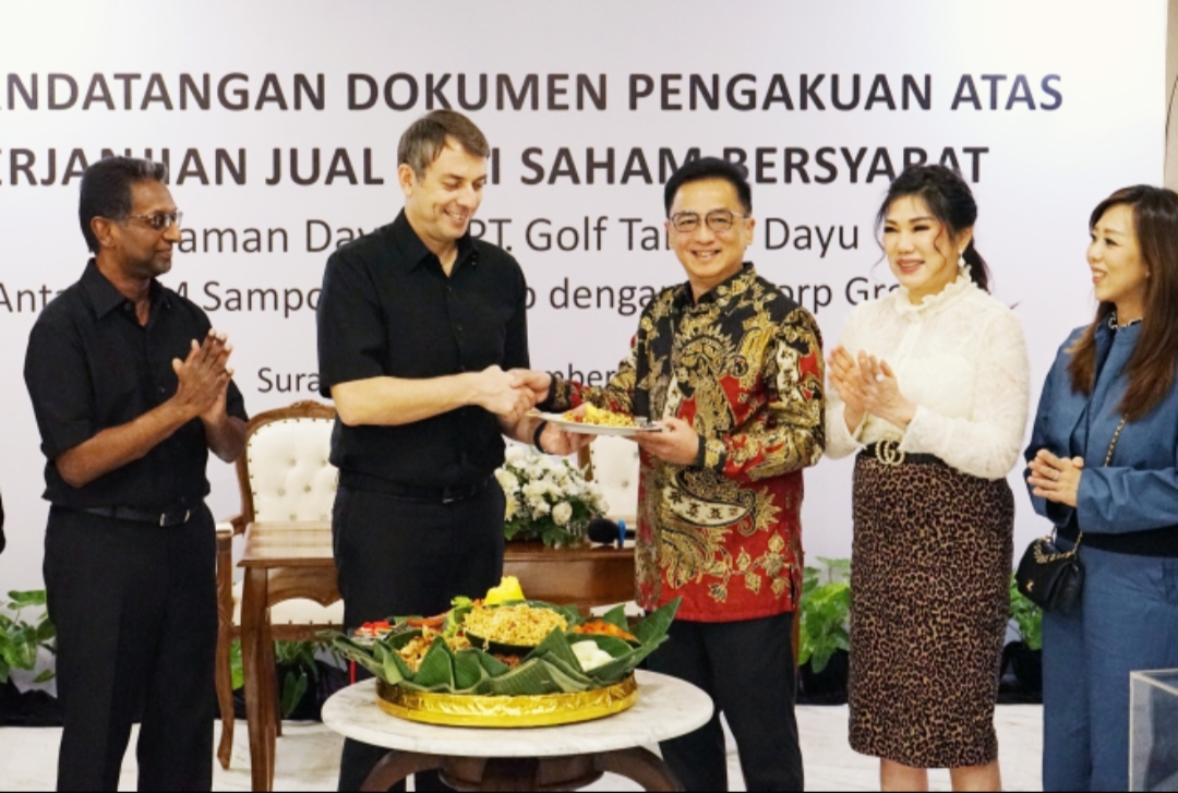 Seremoni ataspenandatanganan perjanjian jual beli saham bersyarat Taman Dayu digelar di Kantor Pusat PT HM Sampoerna Tbk, Surabaya pada bulan November 2023 yang dihadiri oleh jajaran direksi Tanrise Property, termasuk Komisaris Utama Tanrise Property sekaligus CEO of TANCORP Group Hermanto Tanoko dan Sanderawati Joesoef, Direktur Utama Tanrise Prop erty Belinda Tanoko, President Dire ctor PT HM Sampoerna Tbk Vassilis Gkatzelis, serta Director Strategy PT HM Sampoerna Tbk Sharmen Karthigasu.